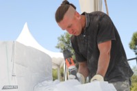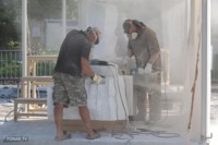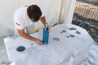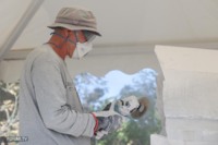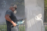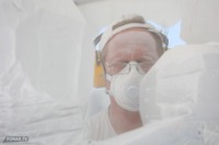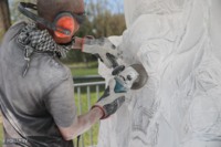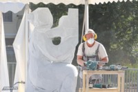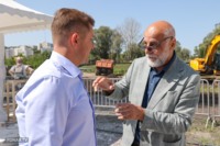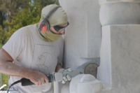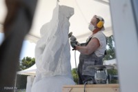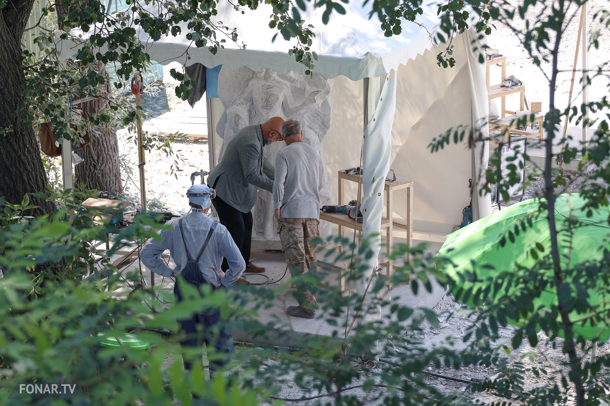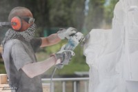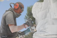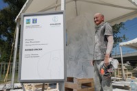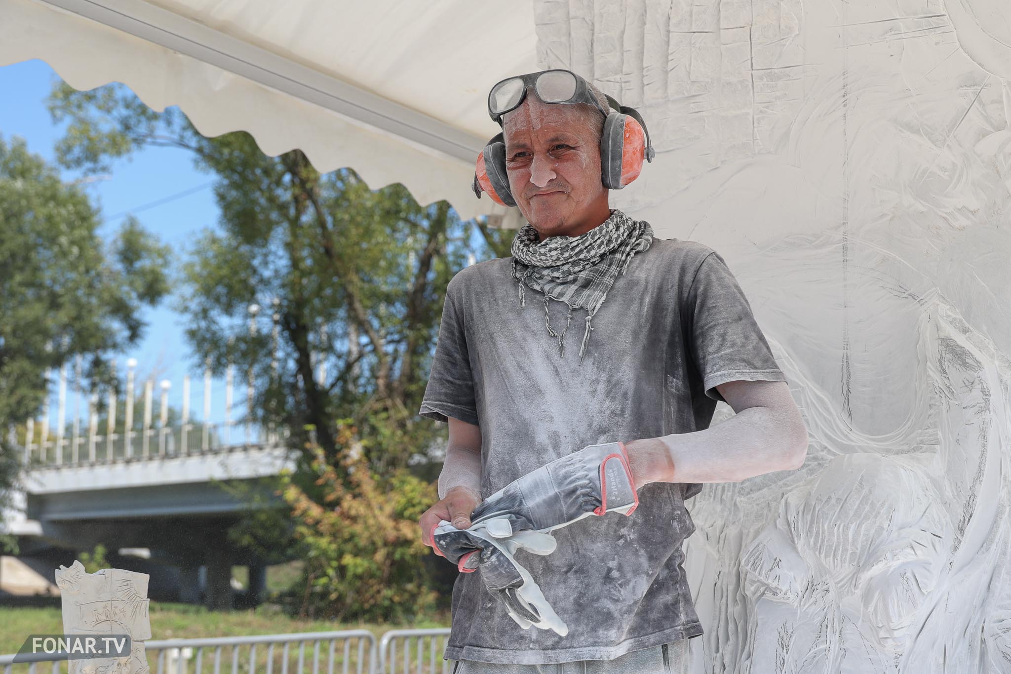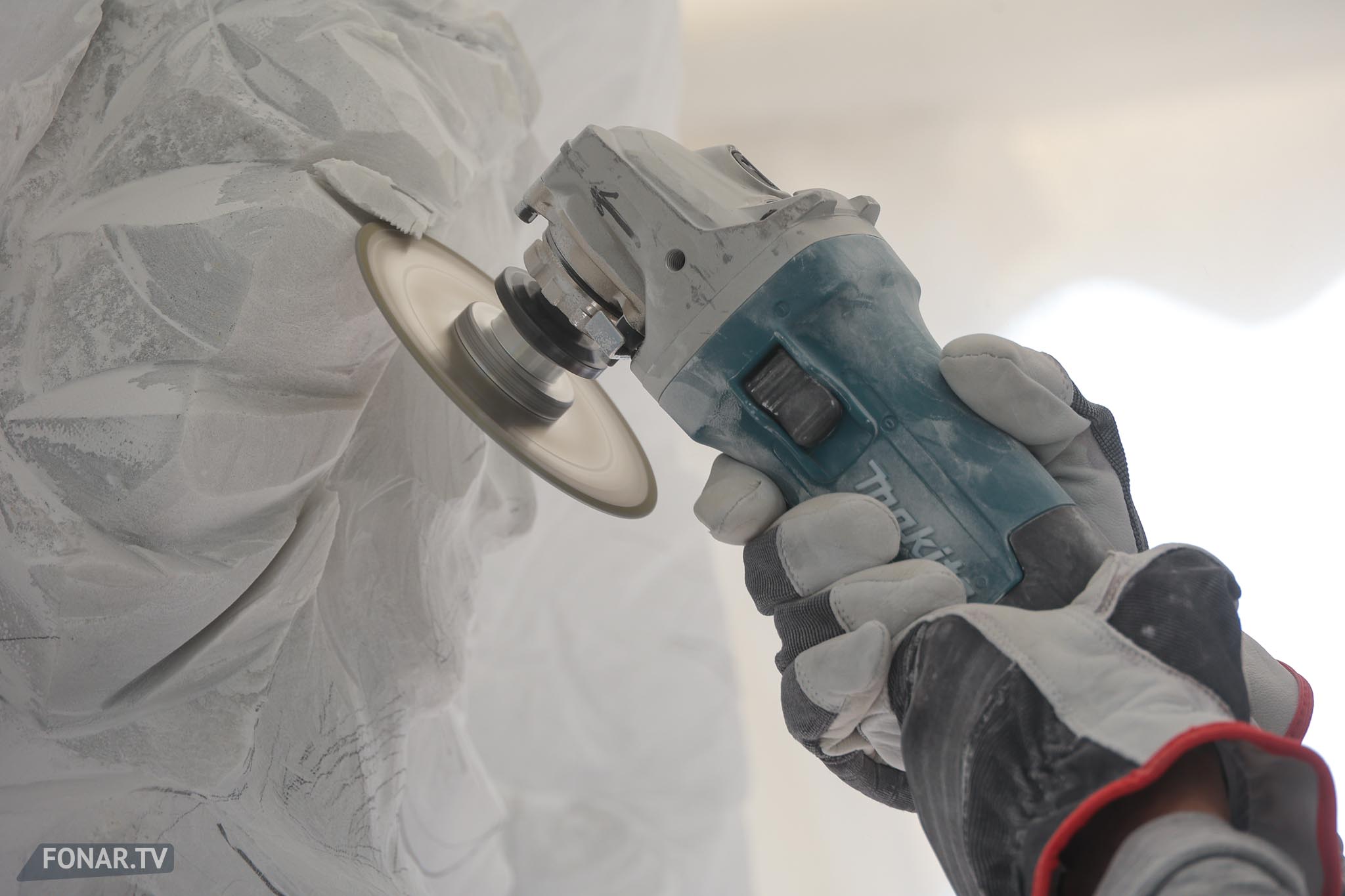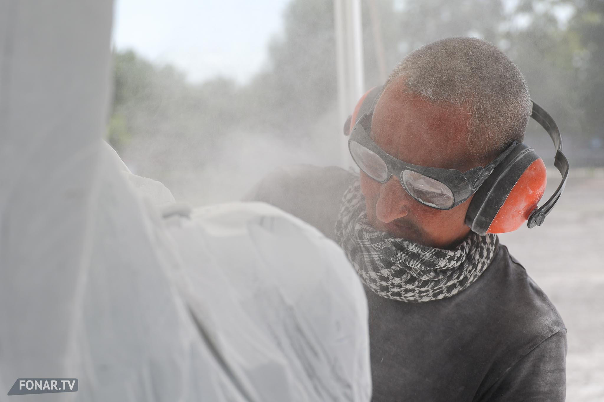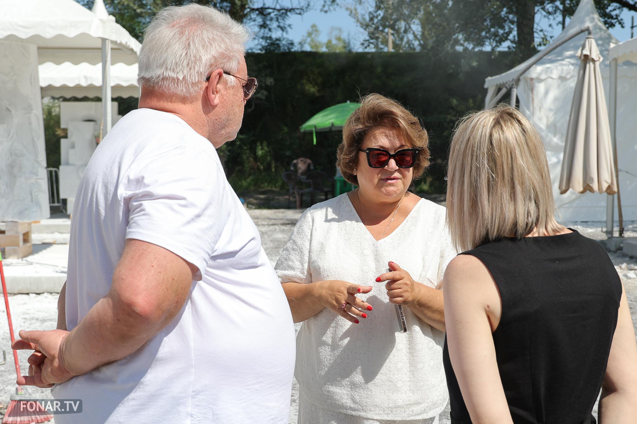Гости и кураторы побывали на площадке, пообщались со скульпторами и даже сделали памятные фотографии с каждым мастером, несмотря на пыль, которая всегда сопровождает работу с камнем. Мэр Валентин Демидов лично оставил свой след на одной из моделей, дополнив аккуратным сердцем надпись «Белгород». Другому произведению он помог аккуратно отсечь несколько деталей по совету автора.