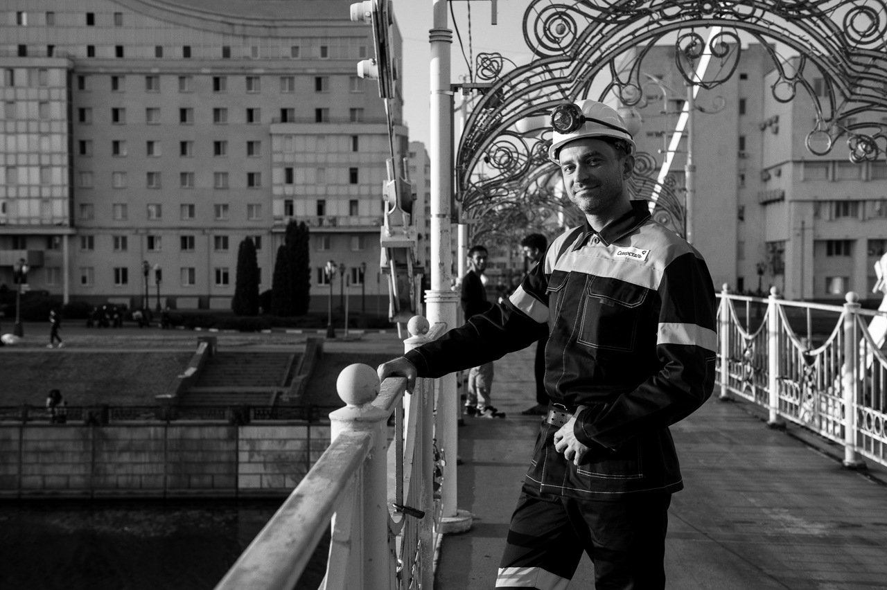 Мы привыкли видеть шахтёров на плакатах, в производственных цехах или на хрониках прошлого. Но здесь они иные — рядом с детьми на качелях, с пенсионерами на лавочках, с влюблёнными парами на прогулке. В этих фотографиях Василия Кучмы сотрудников Яковлевского ГОКа ломаются привычные рамки: шахтёр перестаёт быть символом труда «где-то там» и оказывается человеком «здесь и сейчас»: соседом, товарищем, частью одного большого ритма Белого города.