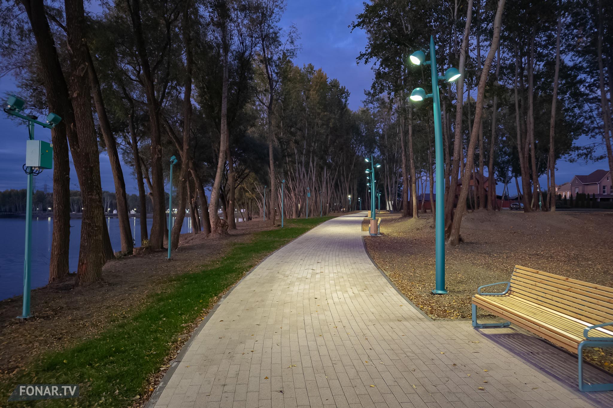 Осенний Белгород не спешит засыпать — набережная «Берега» по вечерам остаётся одним из самых оживлённых мест города. Здесь под фонарями гуляют семьи, бегают дети, катаются на самокатах и делают фотографии на фоне Везёлки. А среди привычных всё ещё зелёных газонов и новых дорожек, которые ведут к парку скульптур «Отражение», неожиданно встречаются пальмы в горшках — как будто кусочек юга переехал в центр Белгорода.