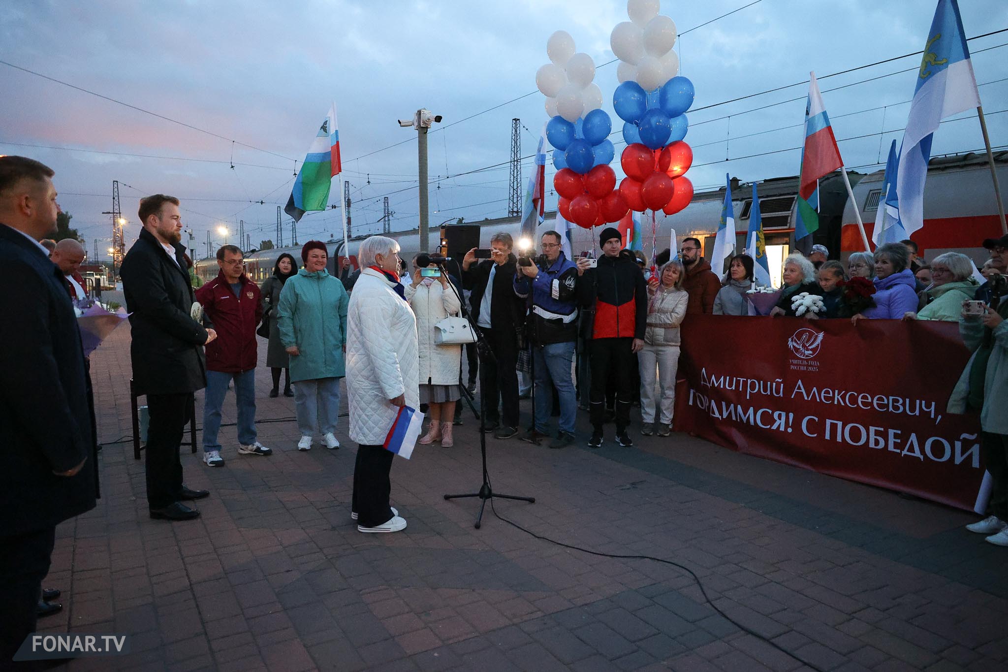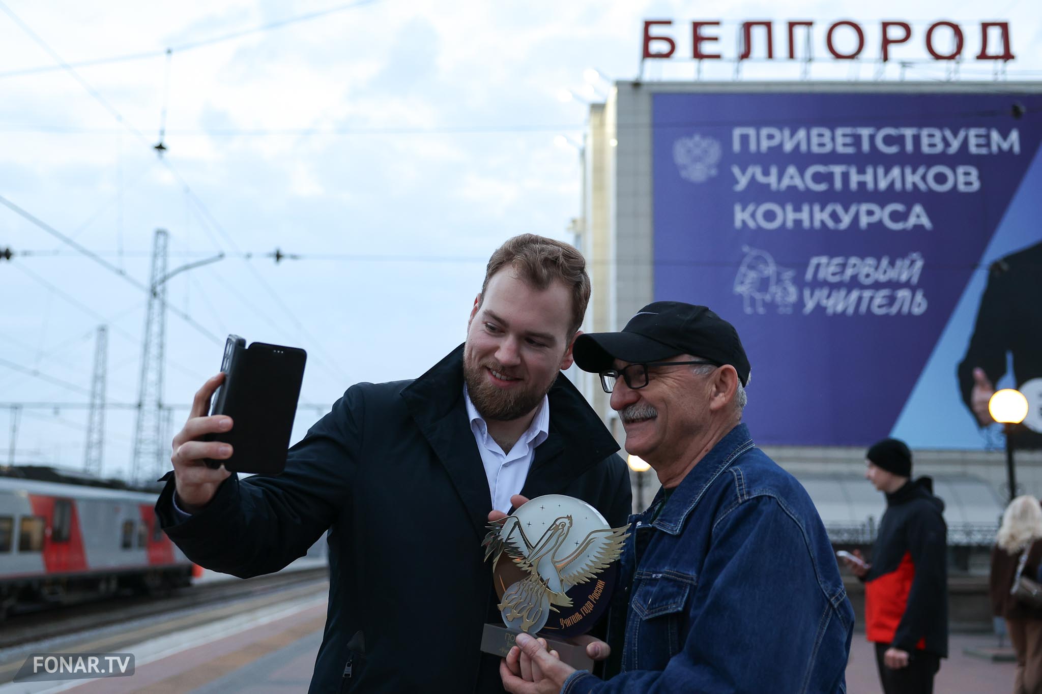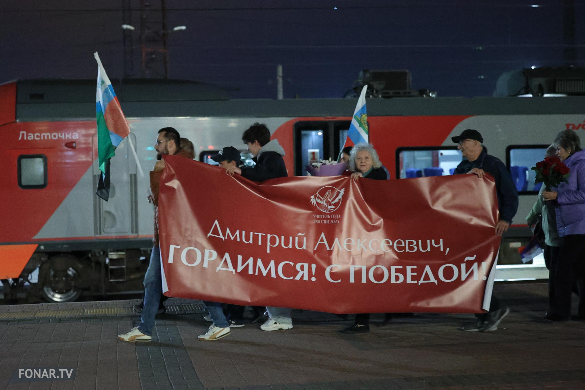 Поезд «Москва—Белгород» только прибыл на белгородский вокзал, а встречающие уже подняли над головами приветственный плакат: «Дмитрий Алексеевич, гордимся! С победой!». На перроне вперемешку — родители учеников, коллеги из 22-й гимназии и просто пассажиры, которым захотелось увидеть человека, привёзшего в Белгород «Большого хрустального пеликана» — главный символ конкурса «Учитель года России».