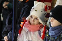 Сказочные герои уехали, и собравшиеся отправились за ними — на специальном автобусе, который бесплатно отвозил всех желающих до площади.