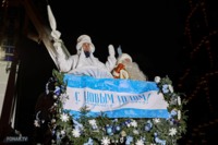 Это уже не первое эффектное появление Деда Мороза в Белгорода: в прошлые года волшебник появлялся на летающих санях, на вертолёте и даже на БТР.