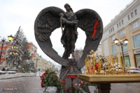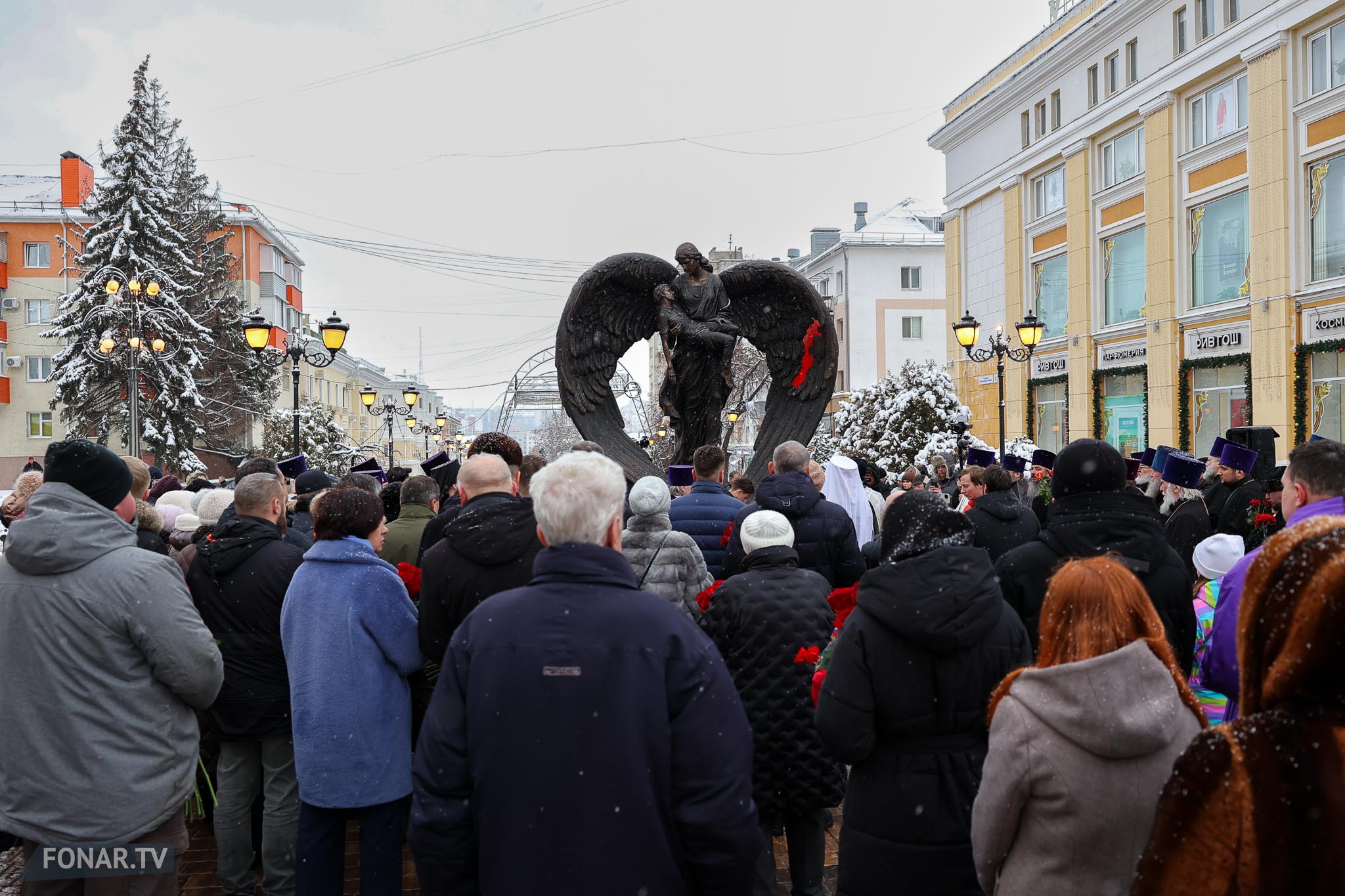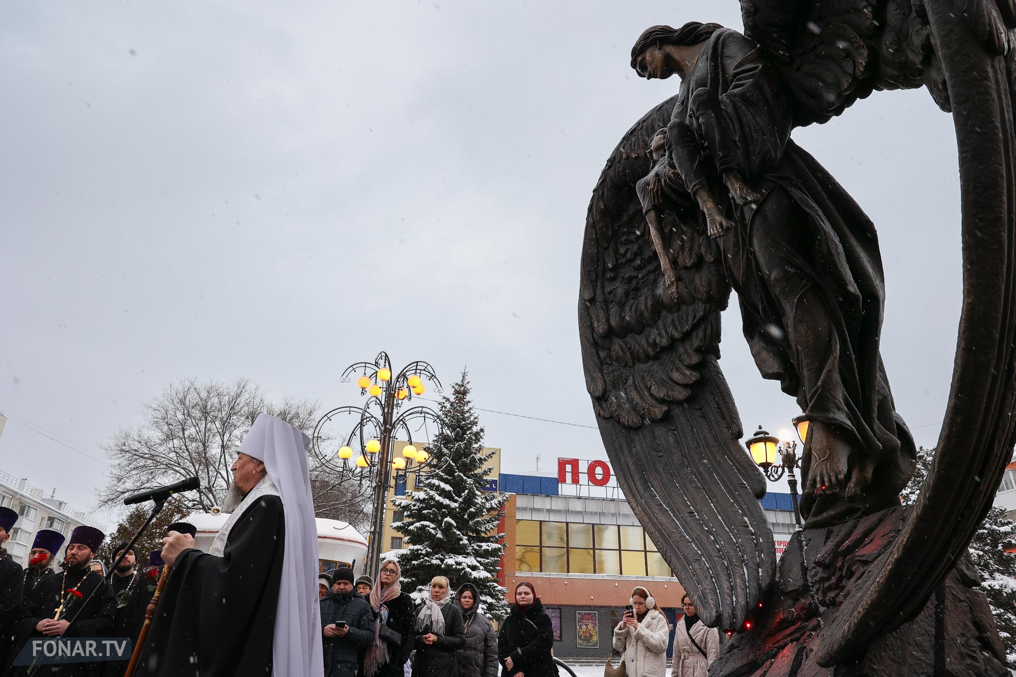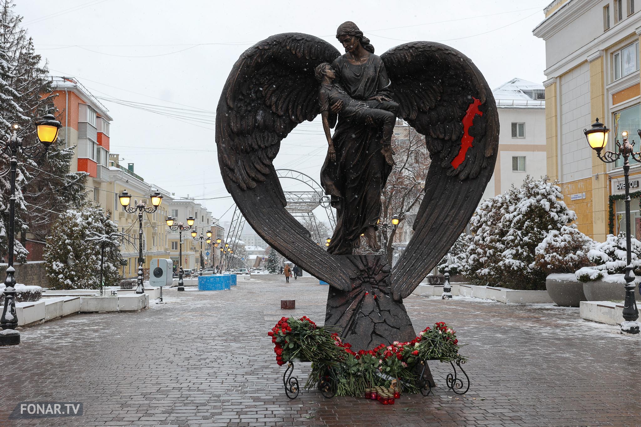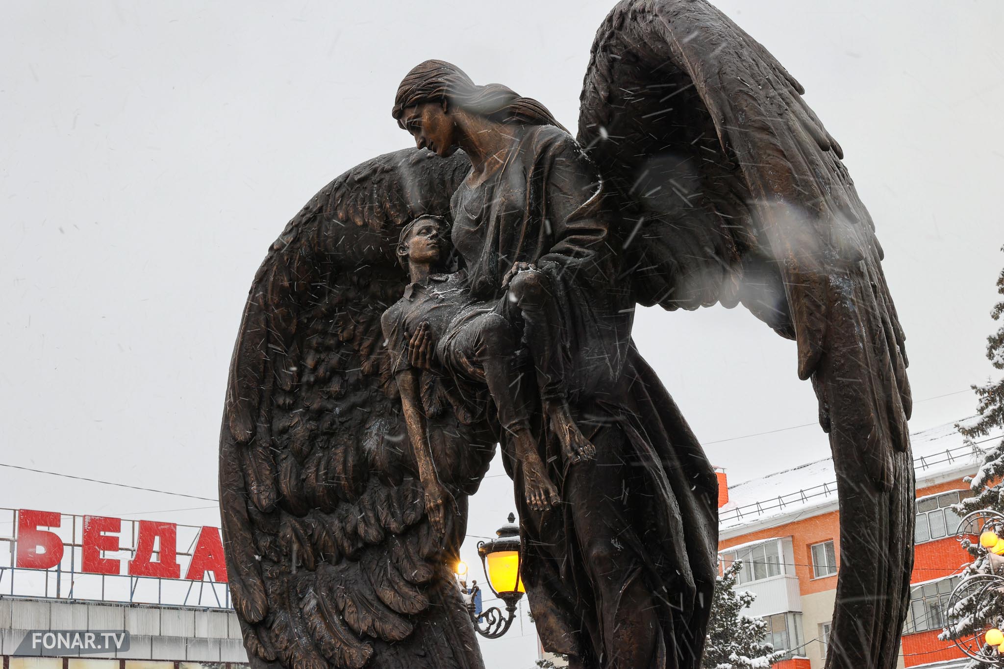 Ранее на этом месте находился стихийно созданный мемориал «Раненое сердце». Во время обстрелов 30 декабря 2023 года арт-объект был повреждён, и белгородцы стали нести к нему цветы и игрушки как символ памяти о погибших. Однако со временем стало понятно, что пластик, из которого сделан арт-объект, недолговечен, и мемориал может потерять презентабельный вид. Белгородские власти решили поставить на этом месте ангела с крыльями в форме сердца, скульптором которого стал Андрей Коробцов.