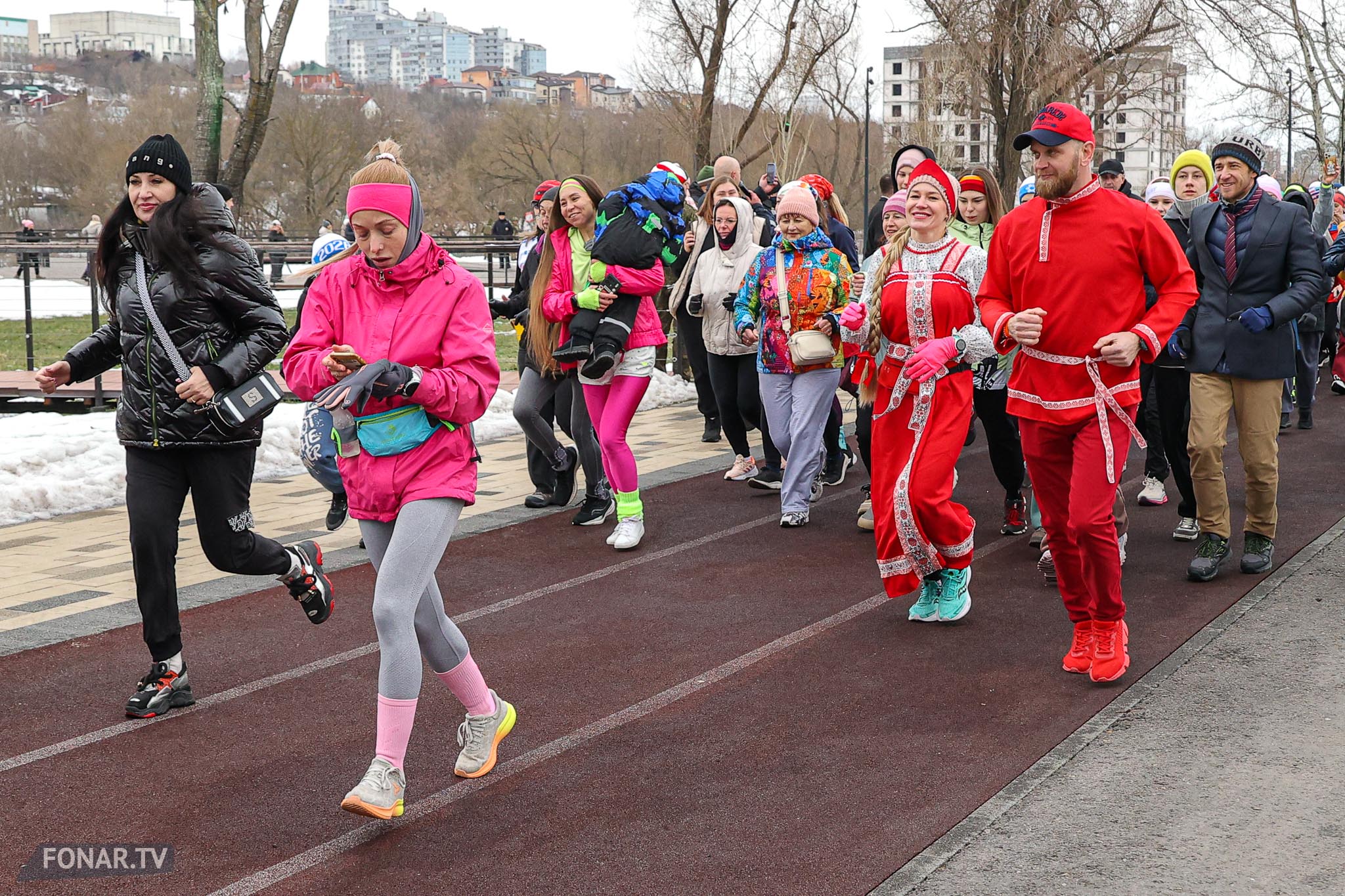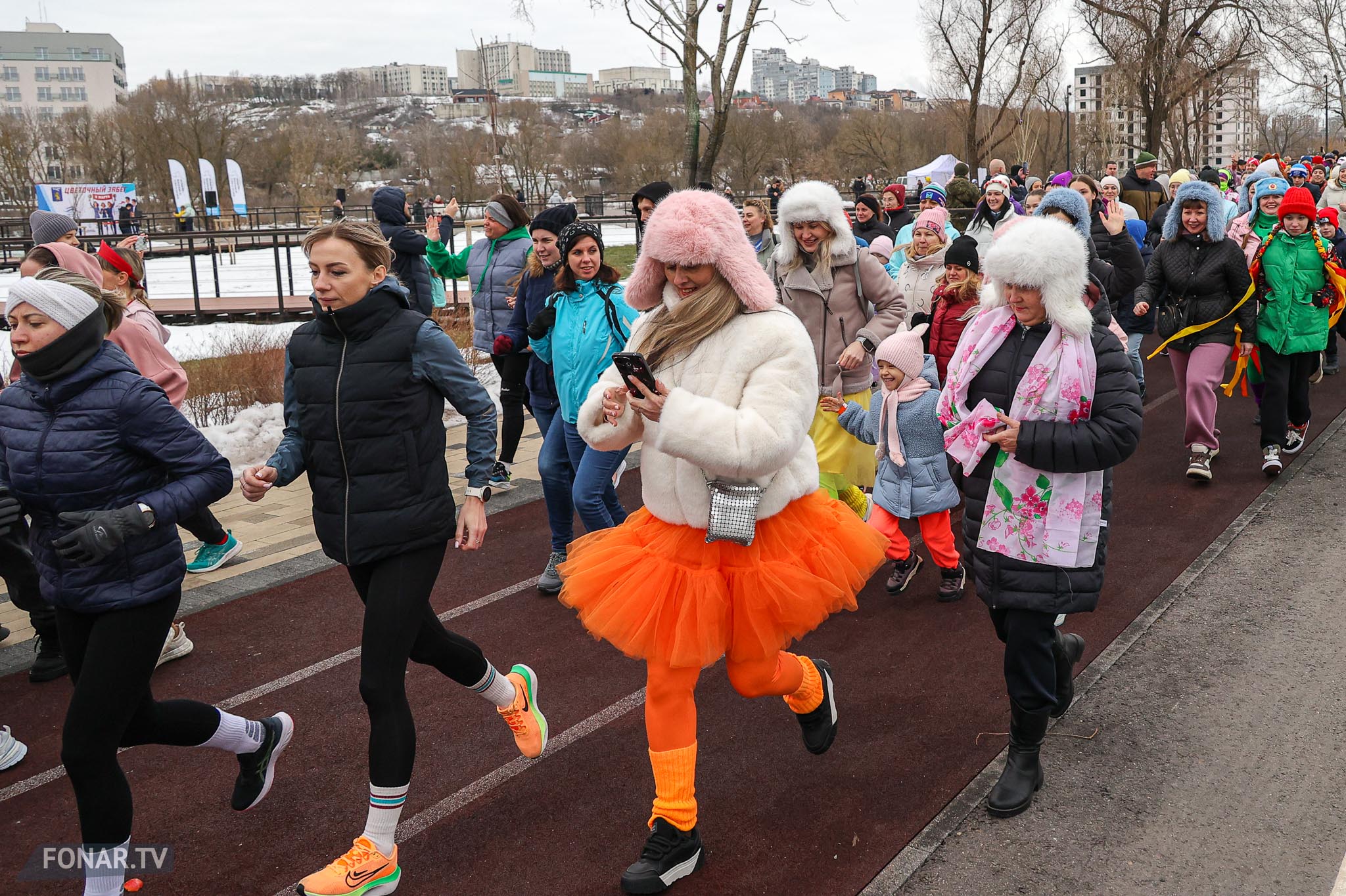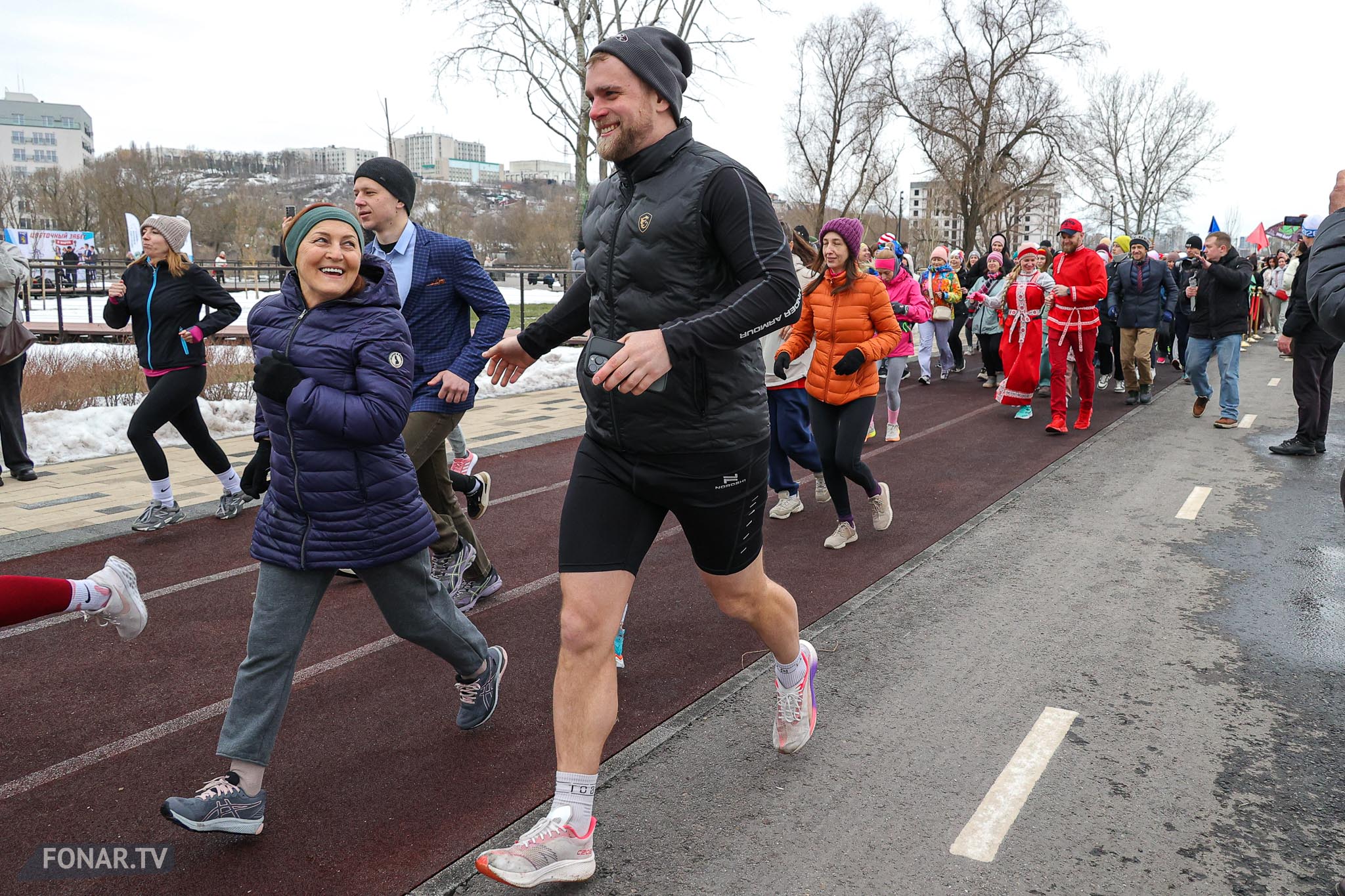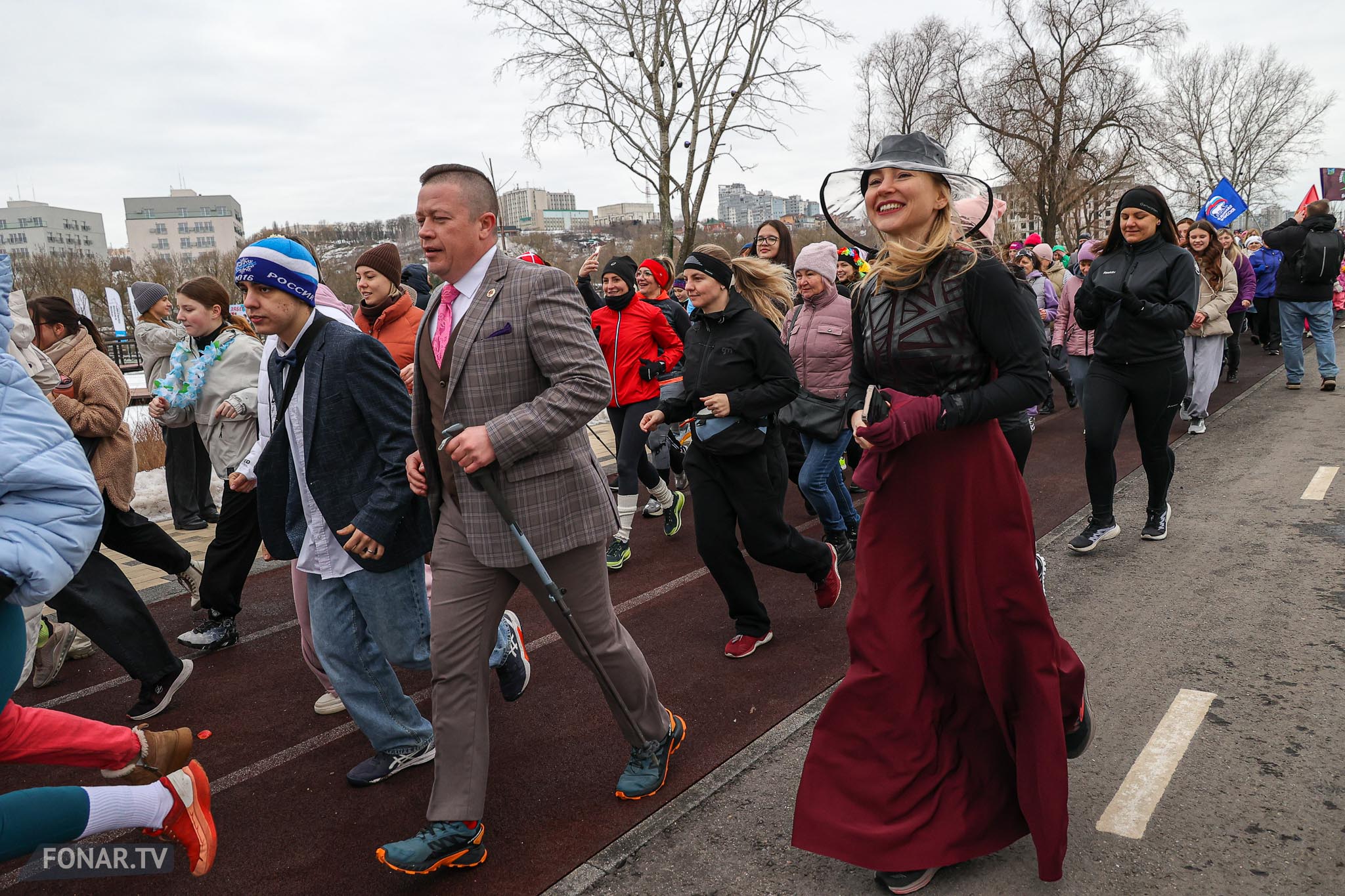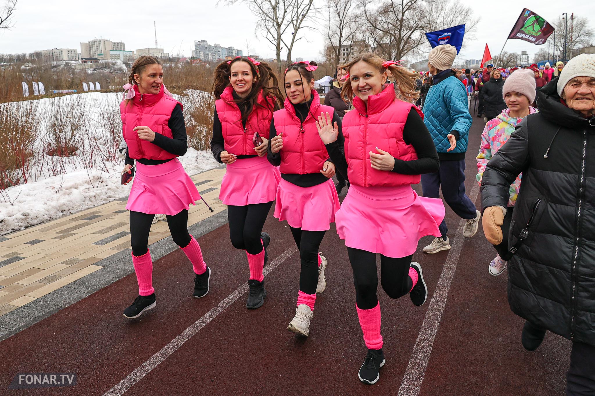 Набережная парка «Берега» на один день превратилась не в спортивную трассу, а в настоящий весенний праздник. В преддверии 8 Марта сотни белгородцев вышли на необычный «цветочный забег»: женщины бежали в платьях, мужчины — в костюмах, а главным результатом стали не секунды на финише, а настроение и улыбки. На дистанции было больше цветов, чем спортивных рекордов — и каждая участница ушла с финиша с медалью и букетом. Показываем, как это было.