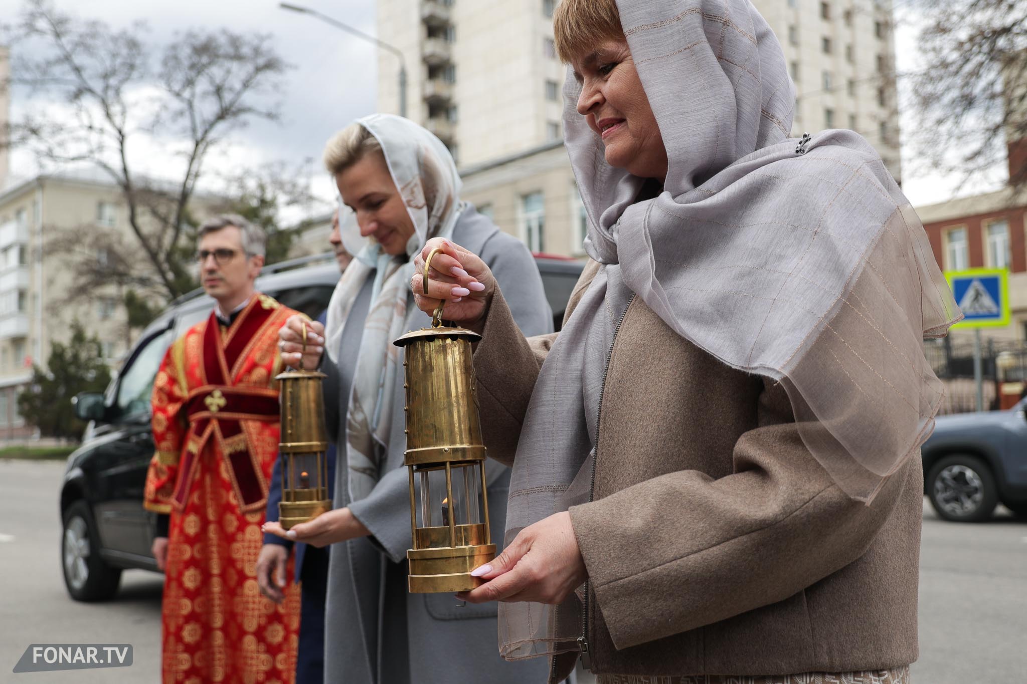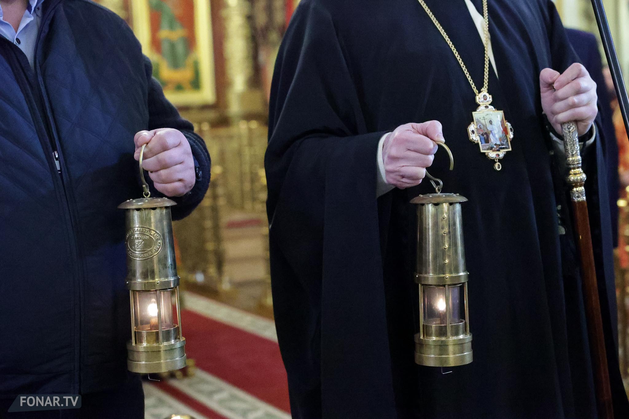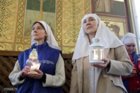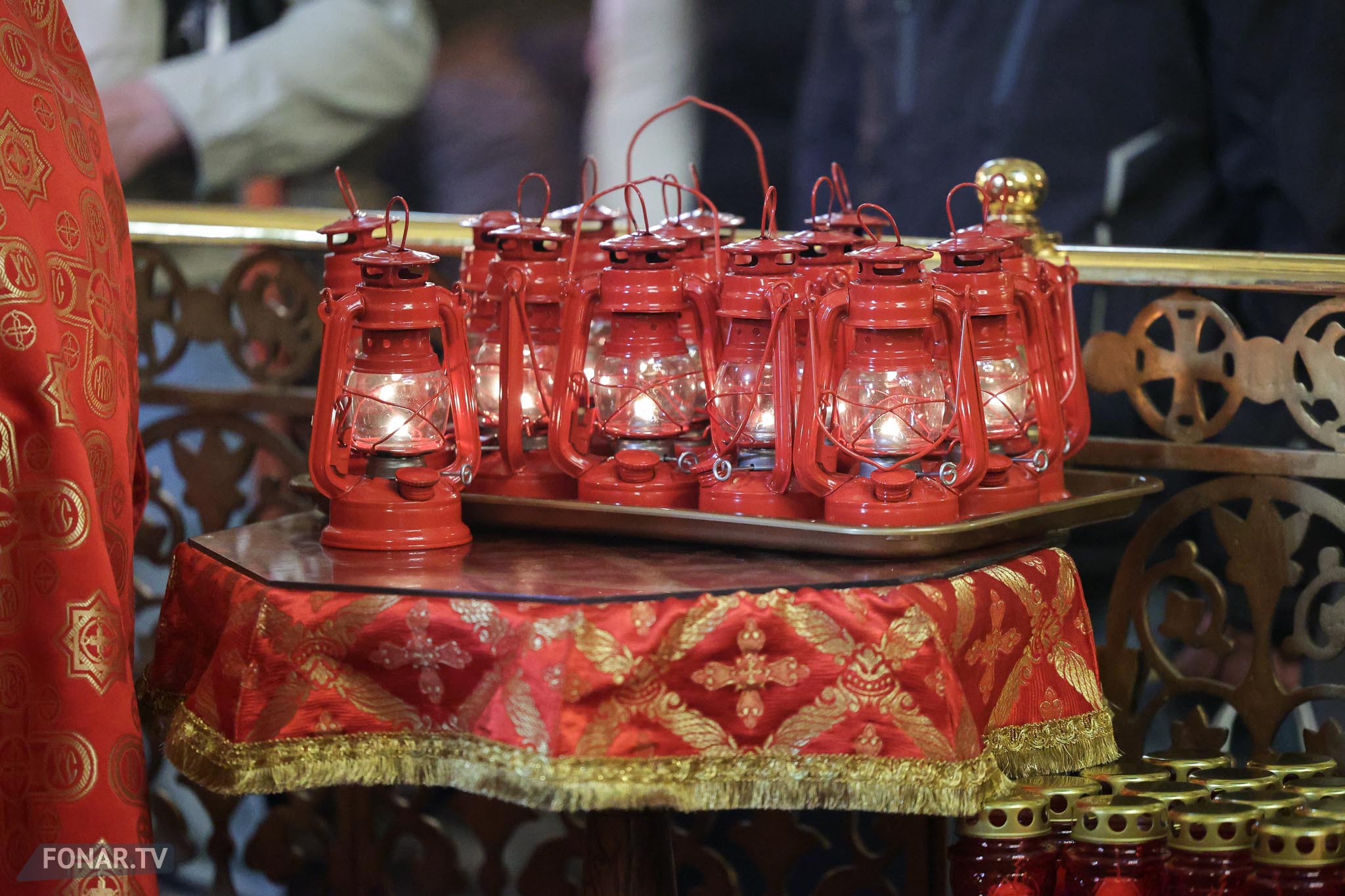 Накануне из России за благодатным огнём прибыла делегация Фонда Андрея Первозванного. Её возглавили председатель попечительского совета фонда Владимир Якунин и викарий патриарха Московского и всея Руси Кирилла митрополит Каширский Феогност (Гузиков). В состав также вошли другие видные деятели России.