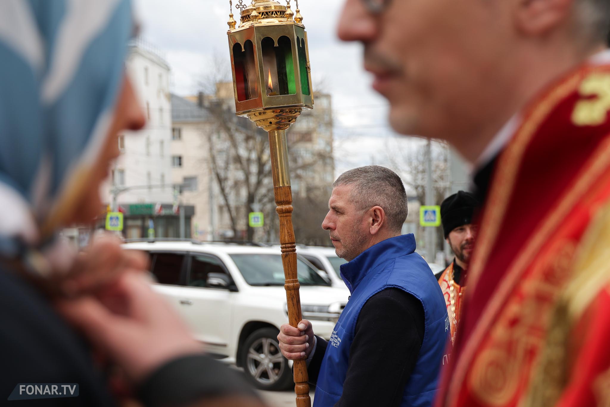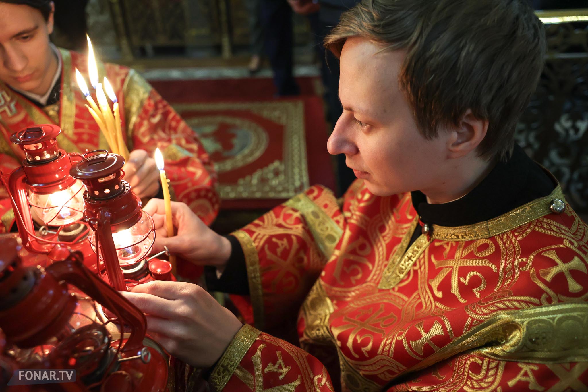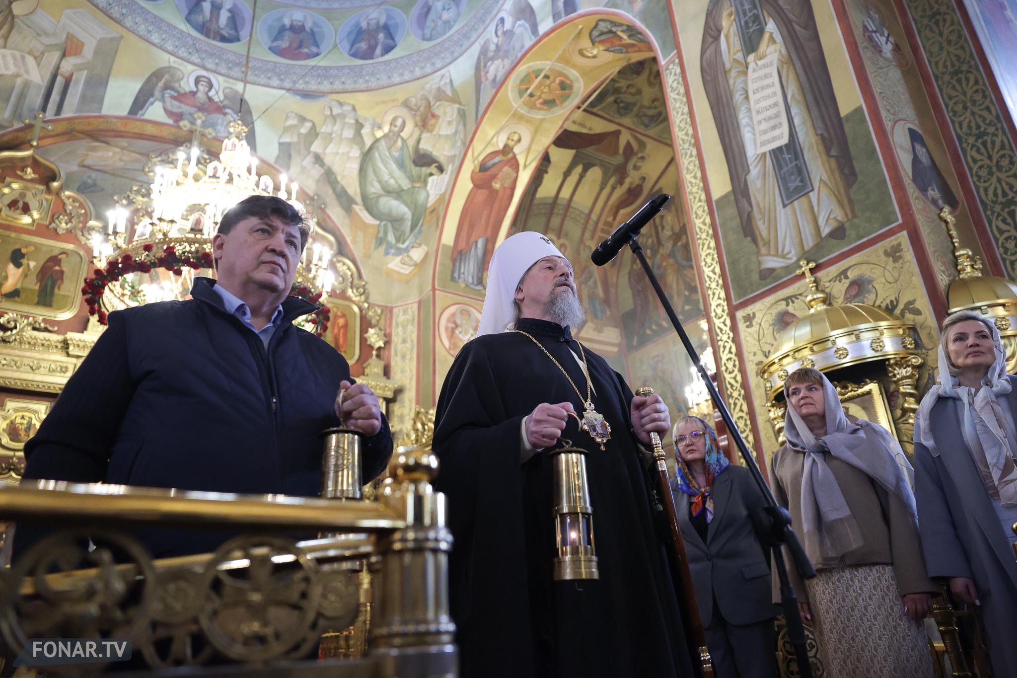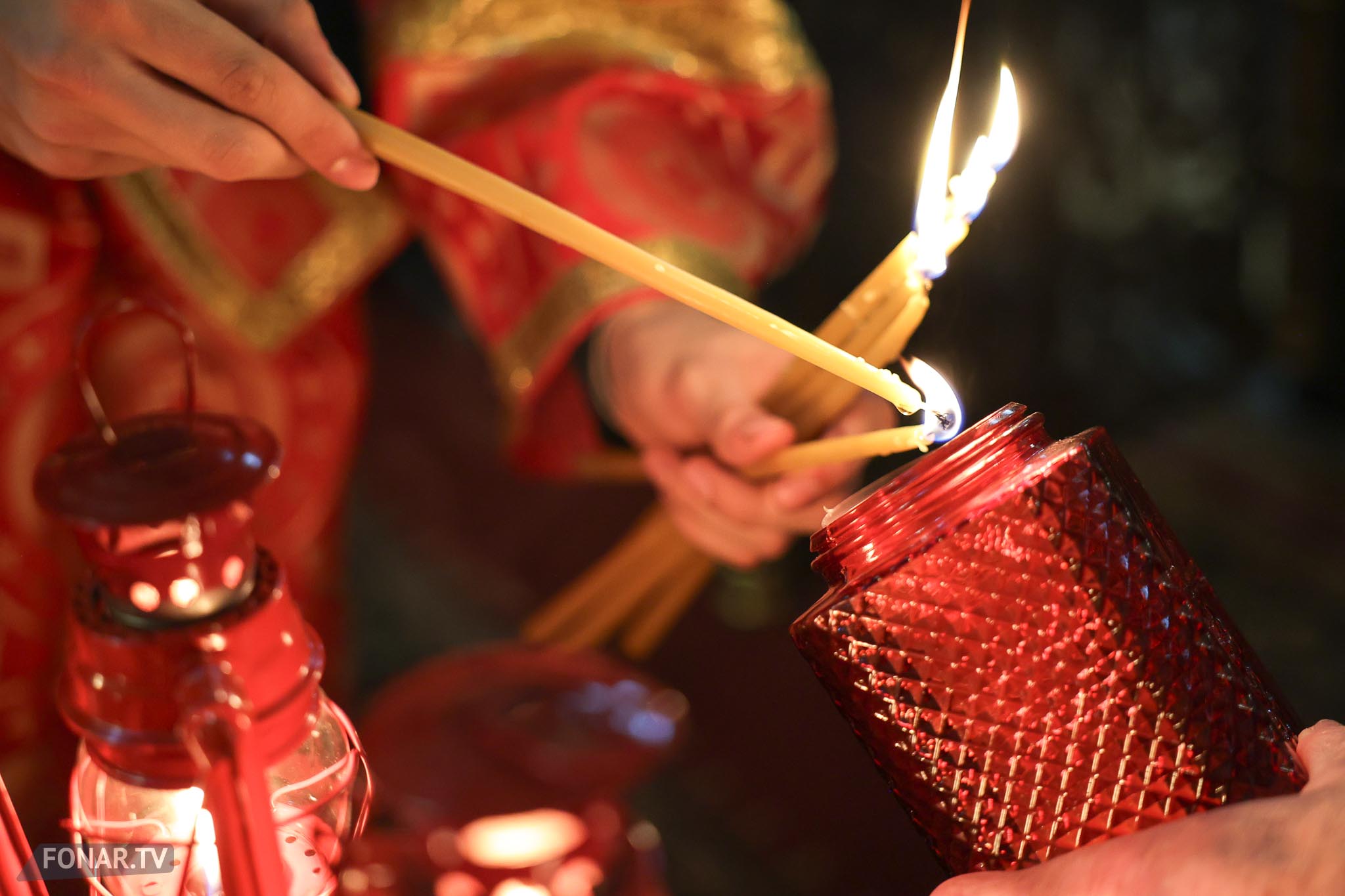 Накануне из России за благодатным огнём прибыла делегация Фонда Андрея Первозванного. Её возглавили председатель попечительского совета фонда Владимир Якунин и викарий патриарха Московского и всея Руси Кирилла митрополит Каширский Феогност (Гузиков). В состав также вошли другие видные деятели России.