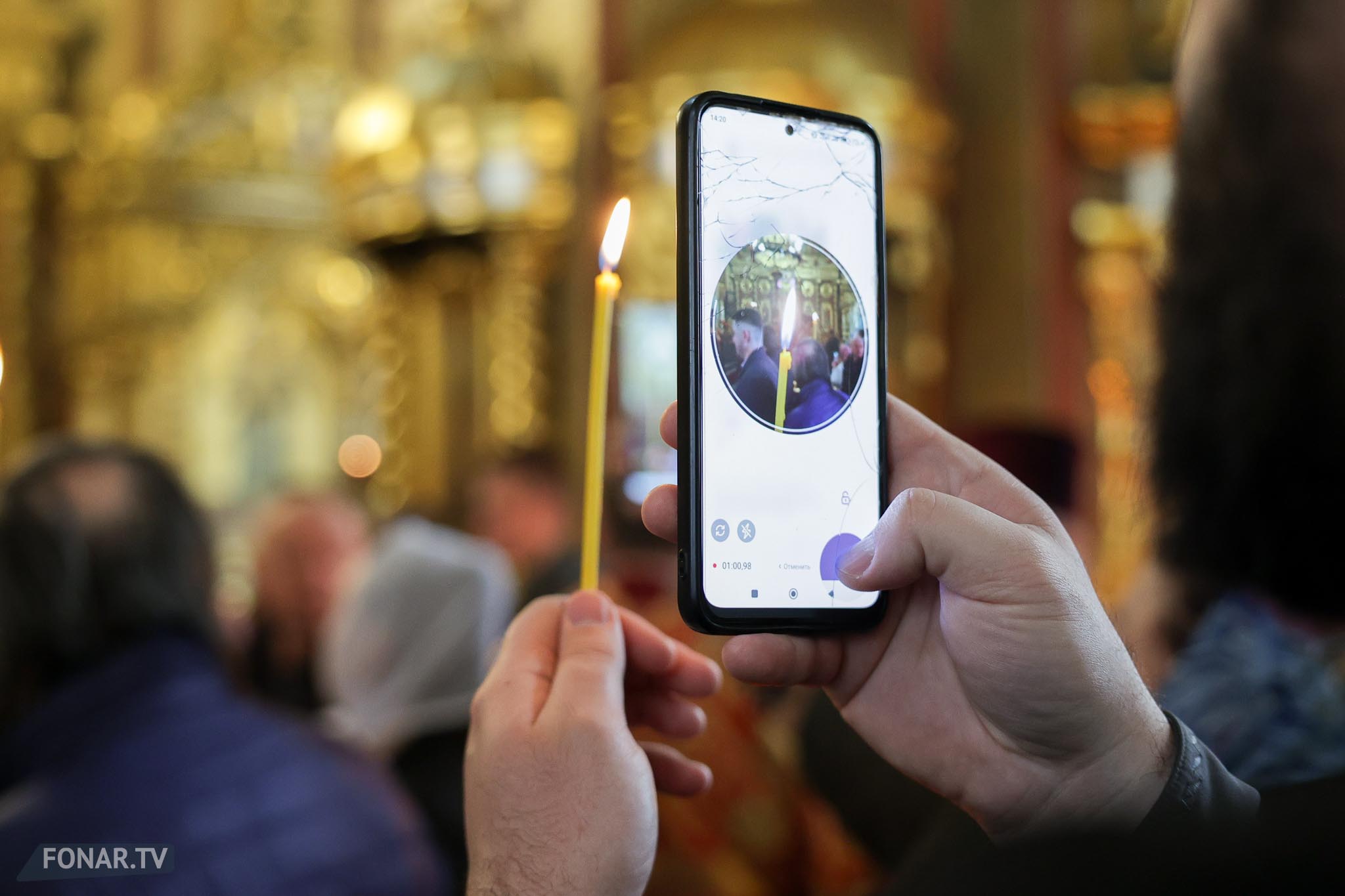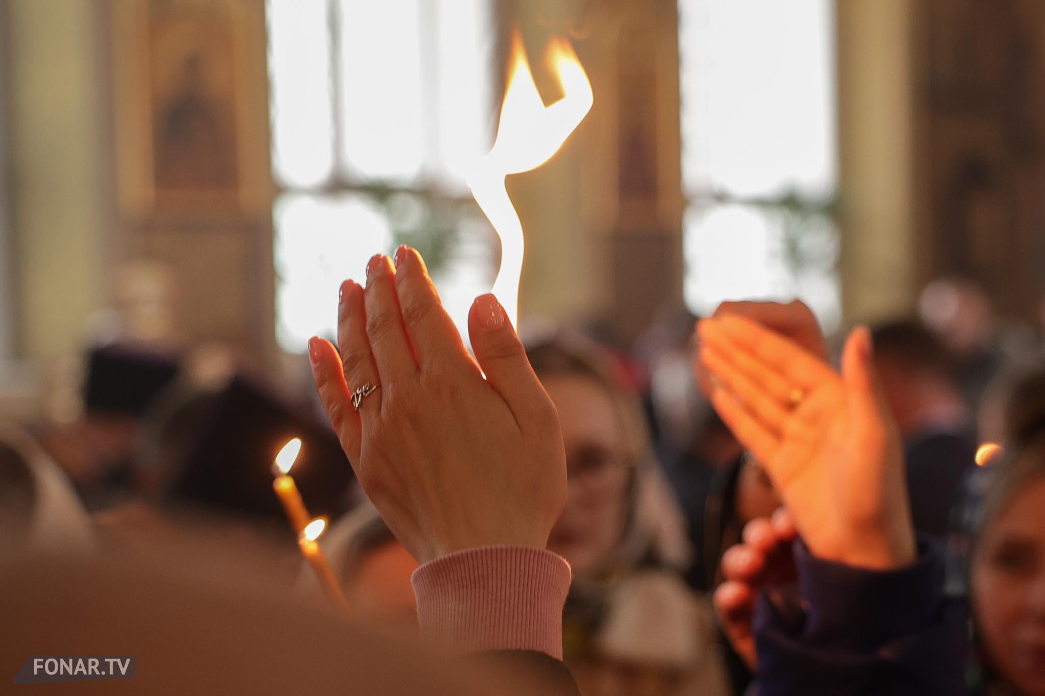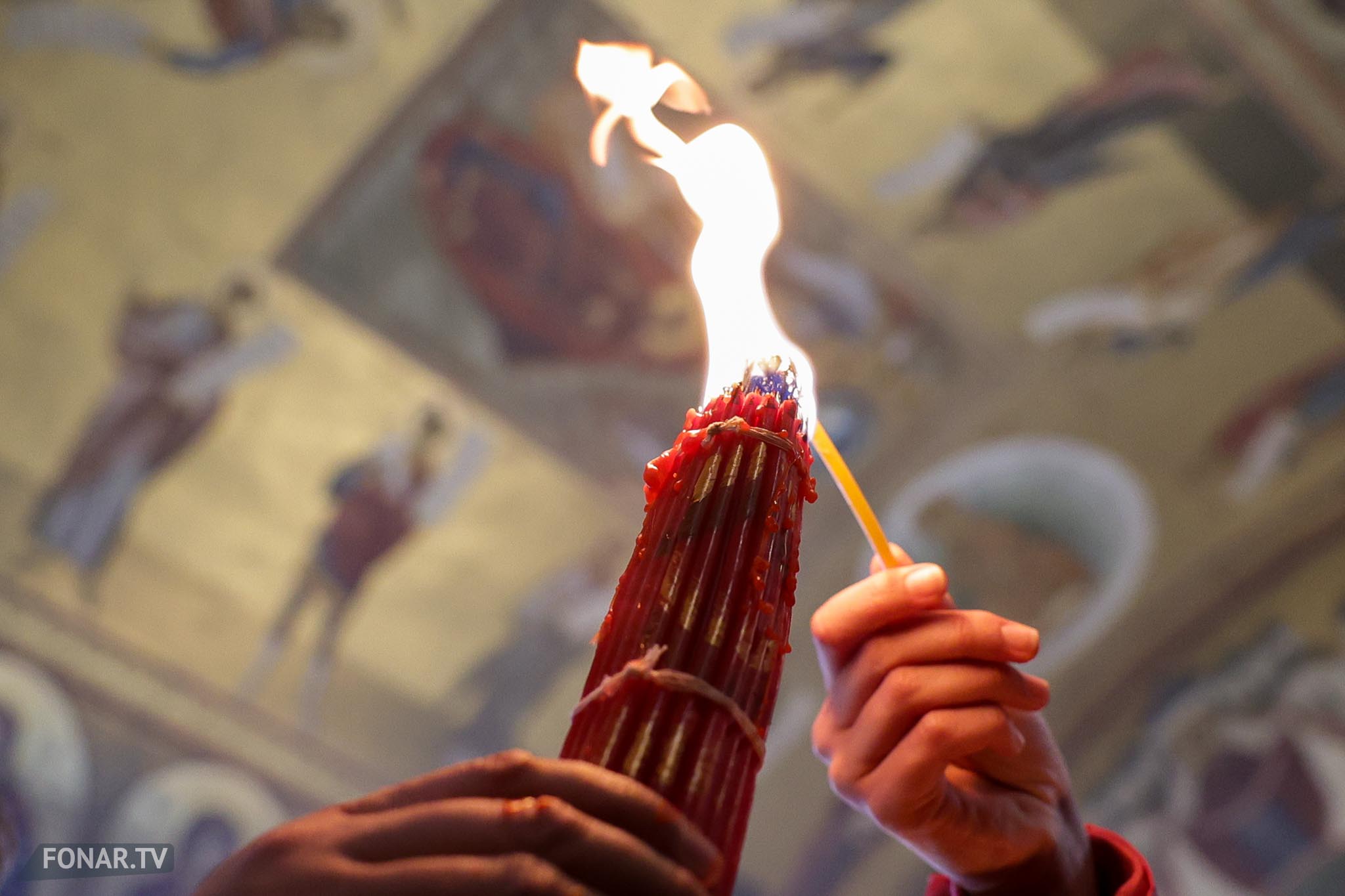 Благодатный огонь сошёл в храме Гроба Господня в Иерусалиме в субботу, 11 апреля. Как сообщает РИА Новости, от момента, когда патриарх Иерусалимский Феофил III вошёл Кувуклию до появления Благодатного огня прошло около пяти минут, это произошло с 14:08 до 14:13 по московскому времени.