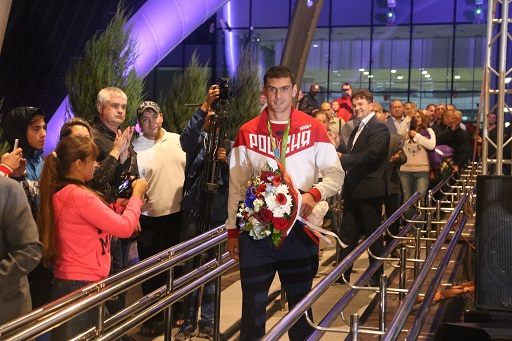 Евгения Тищенко встречают в аэропорту Белгорода, 2016 год, fonar.tv